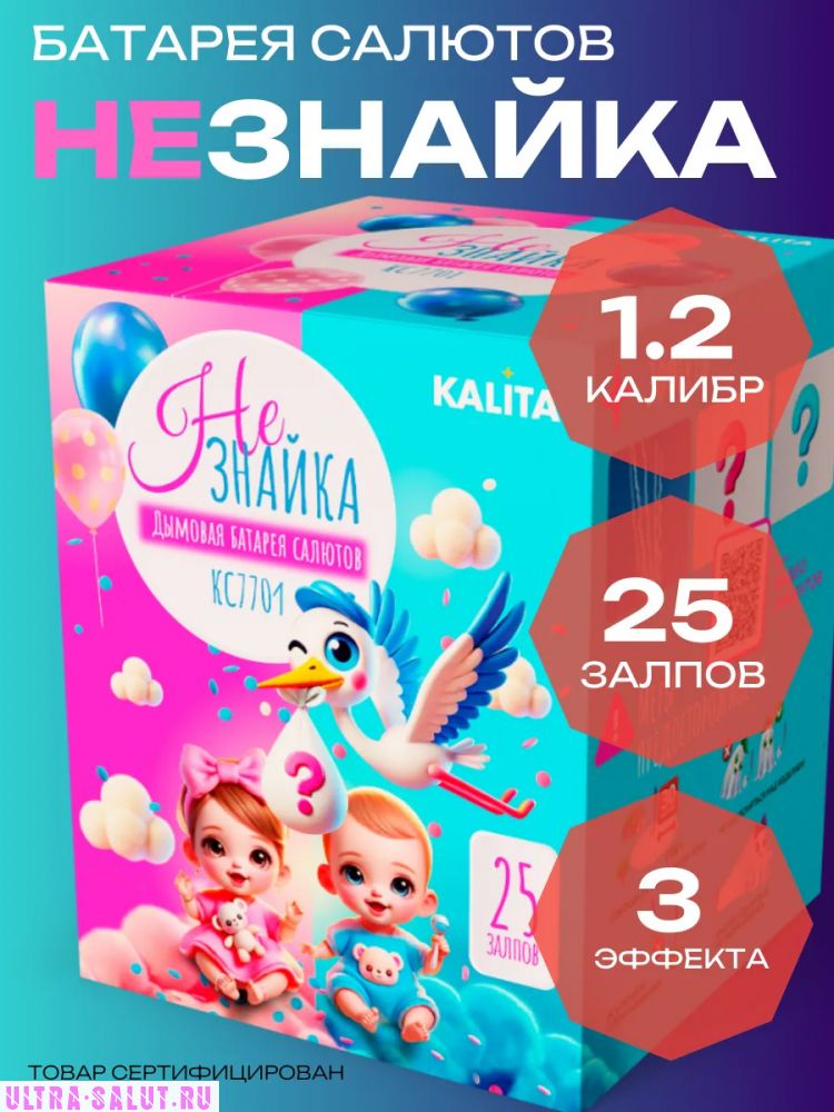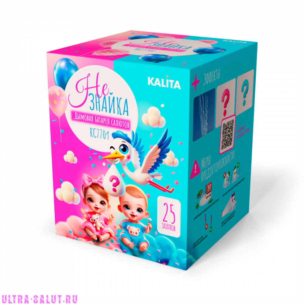 Батарея салютов КС7701 «Незнайка» (1,2" х 25) — это уникальный дневной фейерверк, созданный специально для ярких гендерных праздников. Его эффект наполнен густым дымом, треском и неожиданным «сюрпризом», который делает момент объявления пола ребенка по-настоящему запоминающимся. Такая батарея идеально подходит для того, чтобы придать событию атмосферу волшебства и радости.